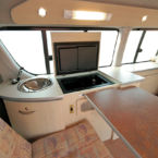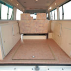 アウトドアやキャンプなどで多くの人気を集めるハイエースをベースとしたアペックスは、ハイエースのシルエットはそのままにハイルーフ架装とすることで、ゆったりとした居住スペースを確保しました。3~5人掛けのダイネット、リアは側面にキャビネット収納を配置、そしてマルチスペース。側面のキャビネットからベッドボードを渡すと就寝スペースへとなる。就寝スペースが必要ないデイキャンプから宿泊キャンプまで幅広く対応できるモデルとなっている。